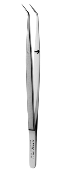 Pinsett med tagget spiss for et positivt grep og en låsemekanisme. Brukes til å gripe eller overføre materialer inn og ut av munnhulen.