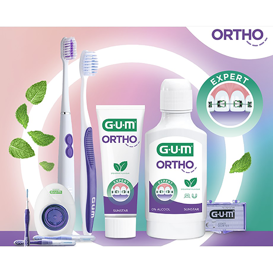 GUM Ortho tannbørster, Ortho tannkrem, Ortho voks.